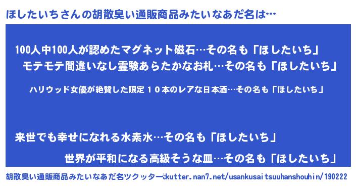 | 欧米人風あだ名 | 『ダレノガレほしたいち』 |