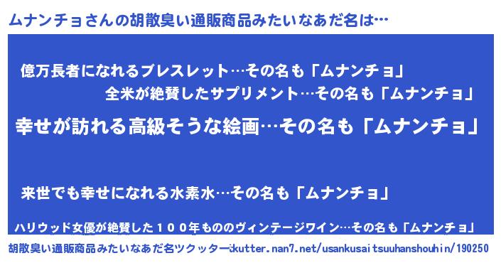 | 男性向けラノベタイトル風あだ名 | 『緋弾のムナンチョ』『ムナンチョの憂鬱』 |