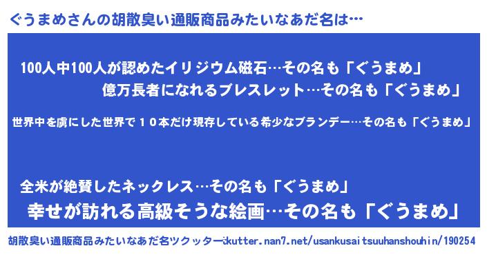| 意味不明あだ名 | 『住所不定無職ぐうまめ(81歳)』 |
