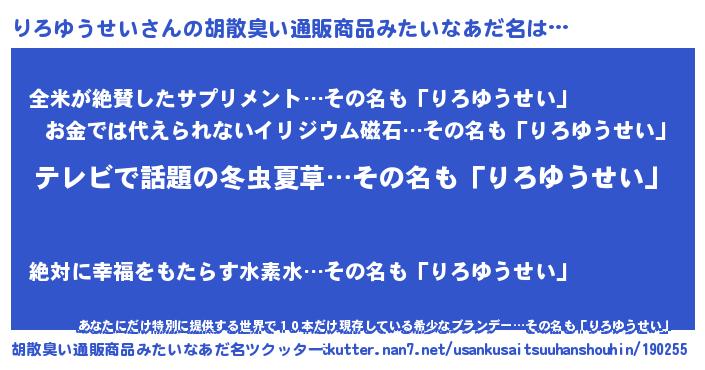 | ヘコむあだ名 | 『りろっぺ』『りろゆうせい(遠い目)』 |