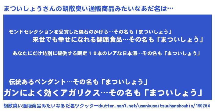 | 男性向けラノベタイトル風あだ名 | 『まついしょうに滅ぼされるだけの簡単なお仕事です』 |