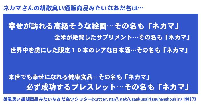 | 意味不明あだ名 | 『住所不定無職ネカマ(65歳)』 |