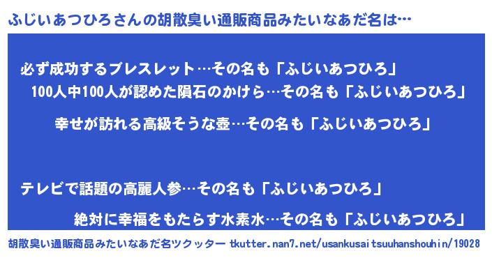 | 男性向けラノベタイトル風あだ名 | 『はたらくふじいあつひろさま!』 |