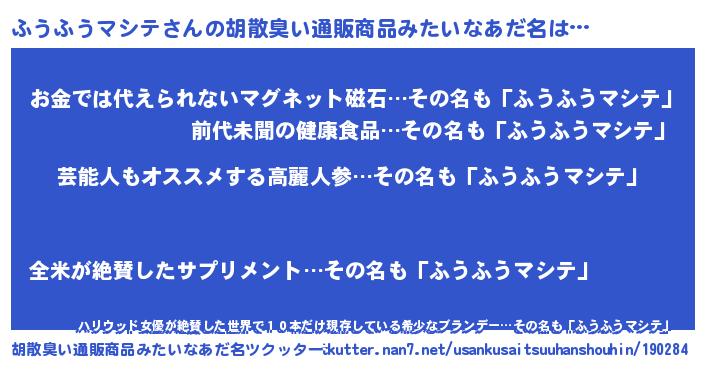 | 意味不明あだ名 | 『自称ふうふうマシテ』 |