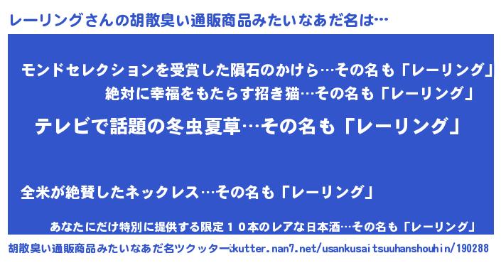 | 男性向けラノベタイトル風あだ名 | 『はたらくレーリングさま!』 |