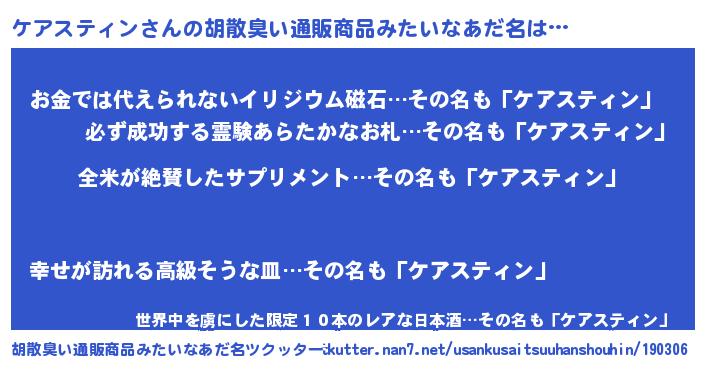 | 意味不明あだ名 | 『とにかく怪しいケアスティン』 |