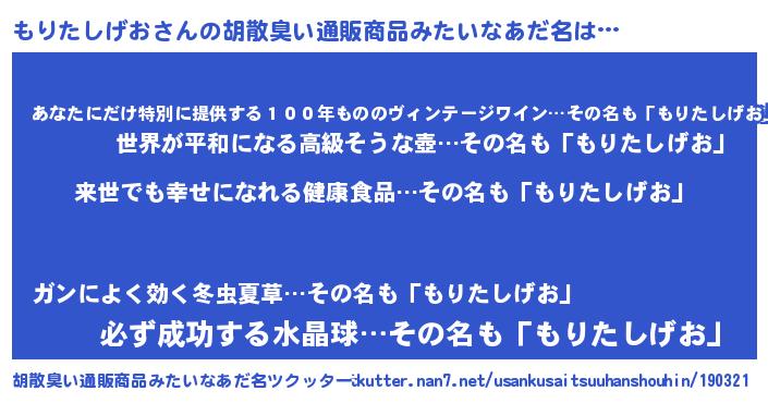 | ヒーロー風カッコイイあだ名 | 『ネオモリタシゲオ』『仮面モリダー』 |