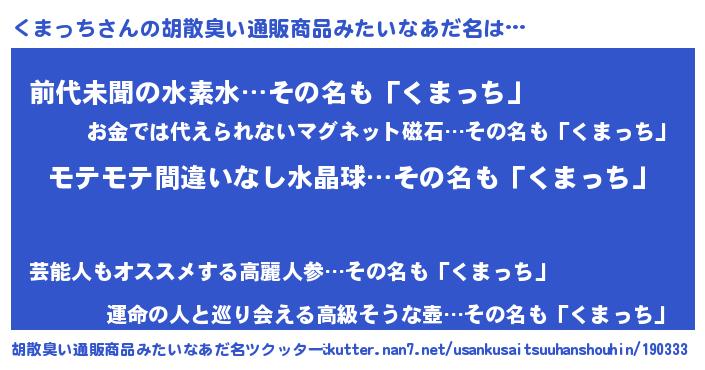 | 欧米人風あだ名 | 『トリンドルくまっち』 |