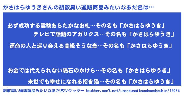 | 欧米人風あだ名 | 『かさはらゆうきクリステル』 |