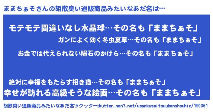 | ヒーロー風カッコイイあだ名 | 『愛の使者ままちぁそ』『ネオママチァソ』 |