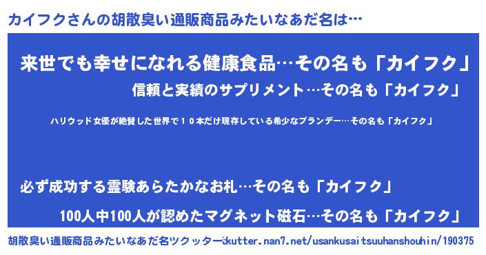 | ピコ太郎風あだ名 | 『ピコカ郎』『カカ太郎』『カイ一郎』 |