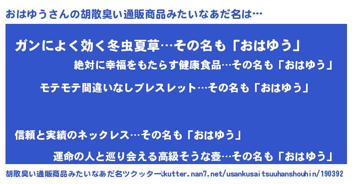 | ヘコむあだ名 | 『おはふぇ~』『牛乳』『おはを』 |