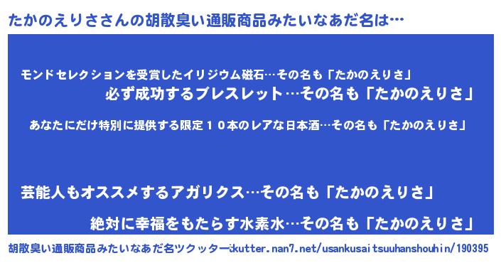 | 意味不明あだ名 | 『住所不定無職たかのえりさ(53歳)』 |