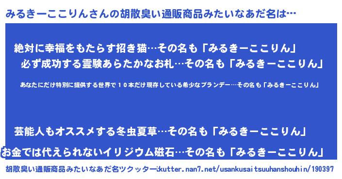 | 欧米人風あだ名 | 『ダレノガレみるきーここりん』 |
