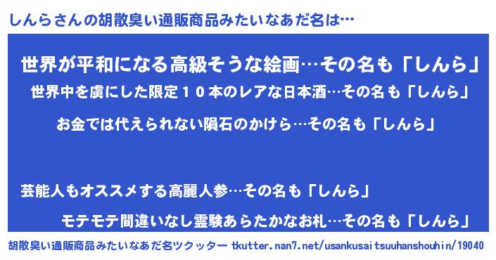| ヒーロー風カッコイイあだ名 | 『愛の使者しんら』『ウルトラしんらマン』 |