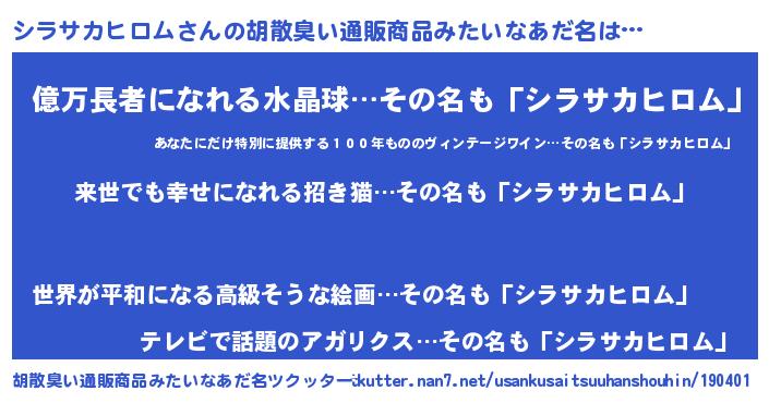 | 意味不明あだ名 | 『永久保存シラサカヒロム』 |