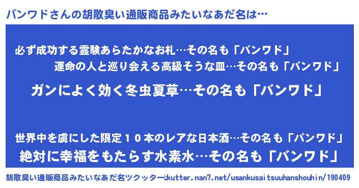 | 恥ずかしいあだ名 | 『バンワドデラックス』『バンちん』 |