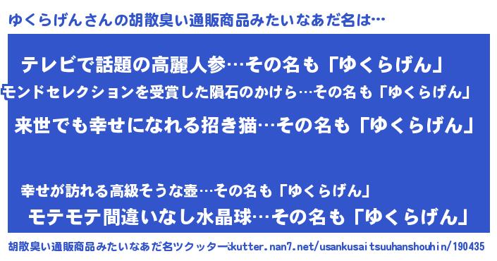 | 伝説のあだ名 | 『古より伝わる吟遊詩人ゆくらげん』 |