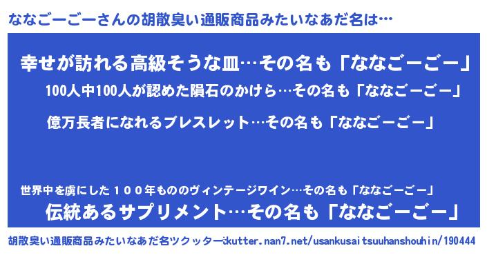 | 男性向けラノベタイトル風あだ名 | 『ナナゴーゴーアートオンライン』 |