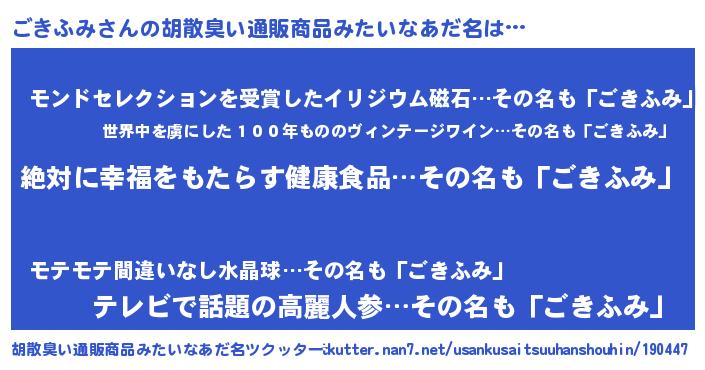 | 男性向けラノベタイトル風あだ名 | 『ごきふみという概念が存在しない退屈な世界 』 |