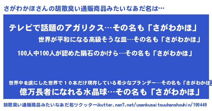 | ヒーロー風カッコイイあだ名 | 『正義の使者さがわかほ』『仮面サガダー』 |