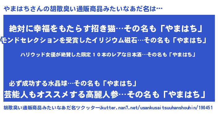 | 欧米人風あだ名 | 『ダレノガレやまはち』 |