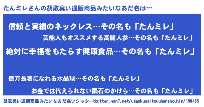 | 意味不明あだ名 | 『永久保存たんミレ』『自称たんミレ』 |