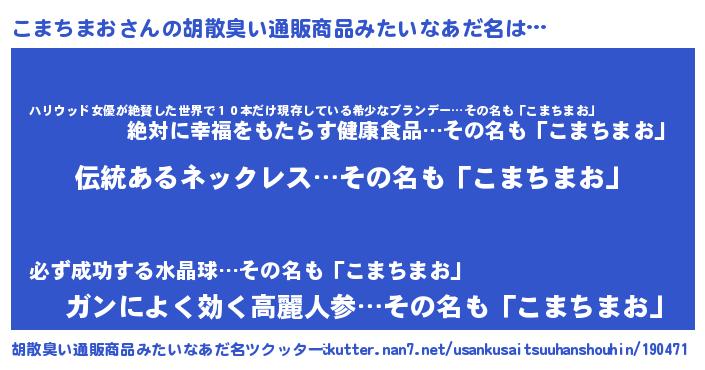 | 意味不明あだ名 | 『とにかく怪しいこまちまお』 |