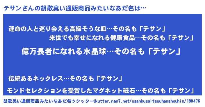 | ヒーロー風カッコイイあだ名 | 『スーパーテサン』『ウルトラテサンマン』 |