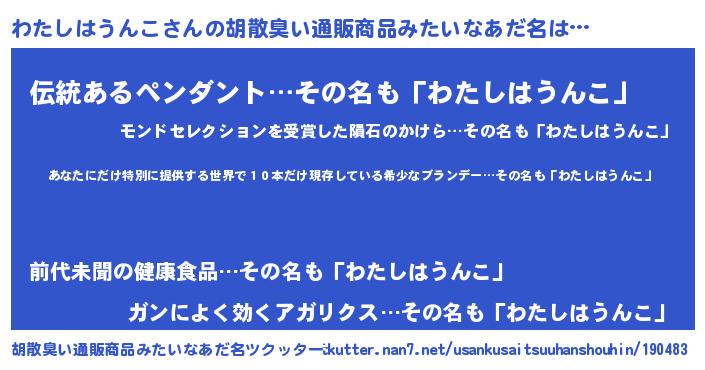 | 欧米人風あだ名 | 『ダレノガレわたしはうんこ』 |