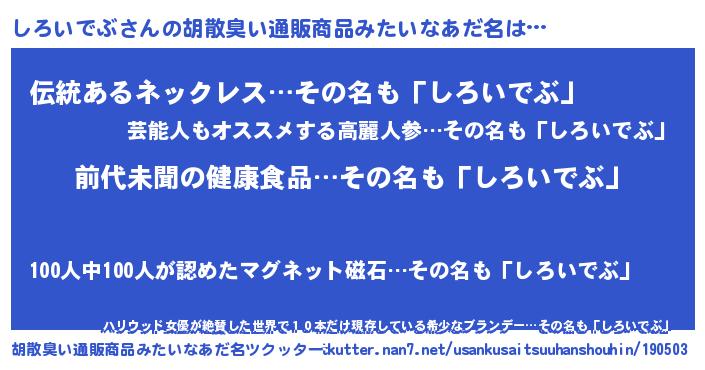 | 意味不明あだ名 | 『永久保存しろいでぶ』『自称しろいでぶ』 |