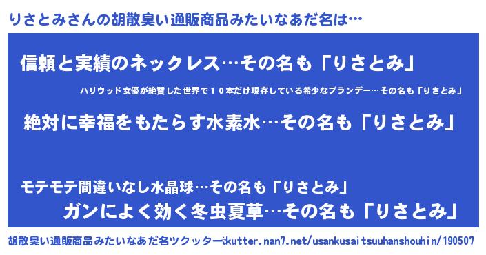 | 女子向けラノベタイトル風あだ名 | 『異世界で失敗しない100のりさとみ』 |