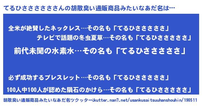 | 意味不明あだ名 | 『永久保存てるひさささささ』 |