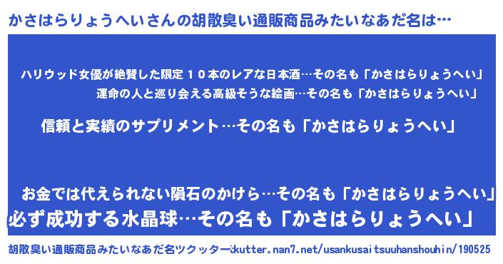 | 意味不明あだ名 | 『とにかく怪しいかさはらりょうへい』 |