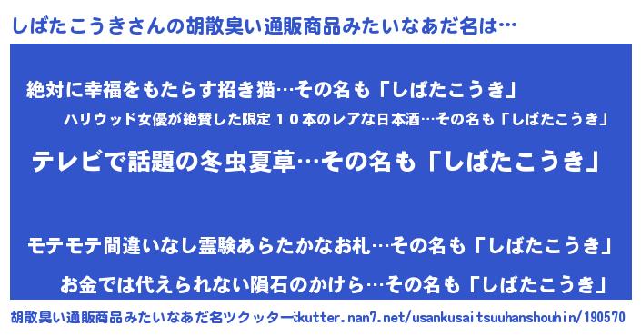 | 意味不明あだ名 | 『自称しばたこうき』 |