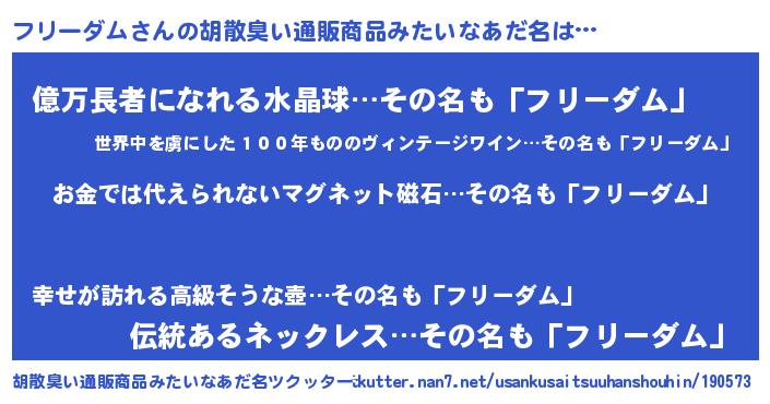 | ヒーロー風カッコイイあだ名 | 『愛の使者フリーダム』『幻影騎士フリ』 |