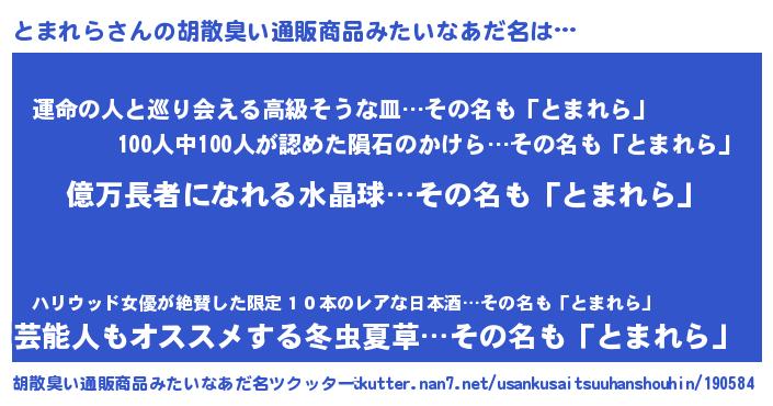 | 意味不明あだ名 | 『ペロリンとまれら』『自称とまれら』 |