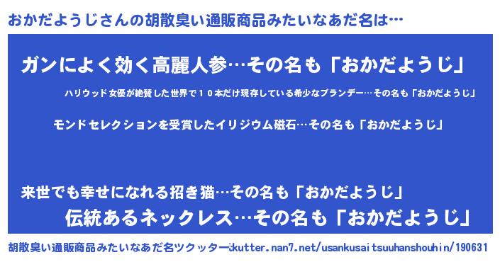 | ヘコむあだ名 | 『おかっ子』『おかだようじ(笑)』 |