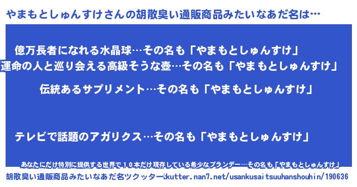 | 意味不明あだ名 | 『とにかく怪しいやまもとしゅんすけ』 |