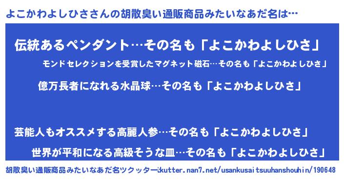 | 肩書あだ名 | 『よこかわよしひさ店長』 |