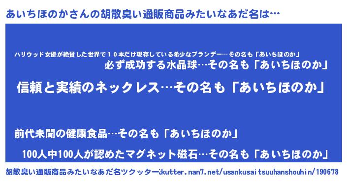 | 女子向けラノベタイトル風あだ名 | 『あいちほのかは平凡を望む』 |