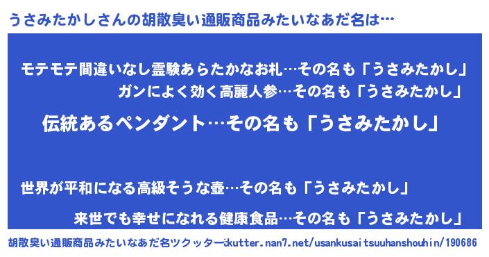 | ポケモン風あだ名 | 『ウサキング』『ヒウサミタカシ』 |