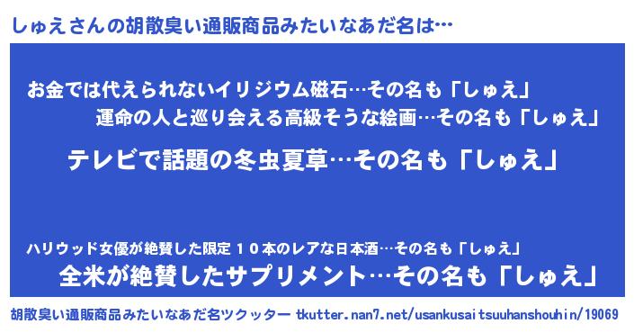 | ヒーロー風カッコイイあだ名 | 『サイバー戦士シュエ』『愛の使者しゅえ』 |