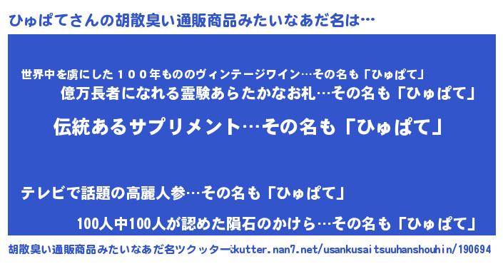 | 意味不明あだ名 | 『とにかく怪しいひゅぱて』 |