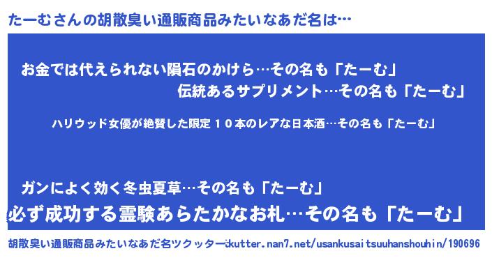 | 意味不明あだ名 | 『住所不定無職たーむ(39歳)』『自称たーむ』 |