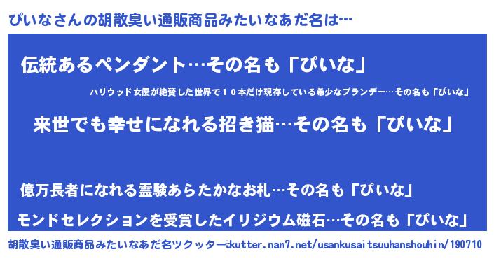 | 意味不明あだ名 | 『永久保存ぴいな』『たけのこ科ぴいな属』 |