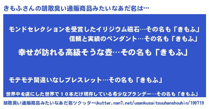 | 意味不明あだ名 | 『きもふフォーエバー』 |