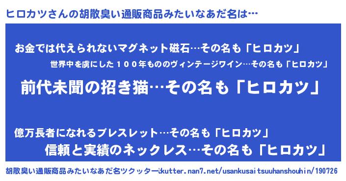 | ヘコむあだ名 | 『ヒロカツ(笑)』『ヒロお』 |