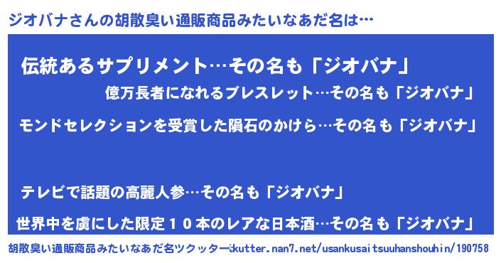 | ヒーロー風カッコイイあだ名 | 『慈愛の使者ジオバナ』『魔戒騎士ジオ』 |