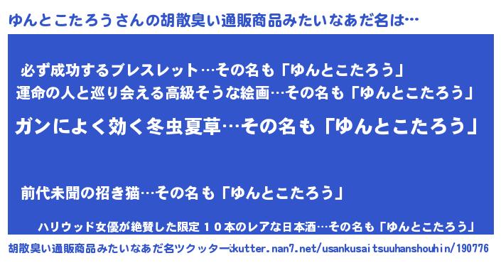 | 意味不明あだ名 | 『自称ゆんとこたろう』 |